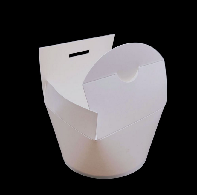 Taban çapı 12,6 cm, yüksekliği 7,2 cm ebatlarında, 26 oz beyaz geniş taban karton lunch box (döner box); gıda güvenliği standartlarına uygun olarak üretilen bu ürün, restoranlar, lokanta, kafelerin paket servislerinde tercih ettiği şık görünüme sahip bir üründür.